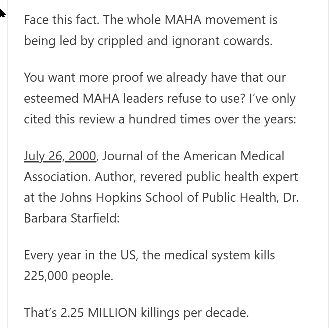 That’s why I wish it were as simple as RFK Jr. just speaking the whole truth. In fact, I’m not sure even RFK Jr. himself knows the whole truth. But even if he did, it’s a more complex problem with a more complex solution than just telling the doctors of the world that they’ve been damaging their patients.