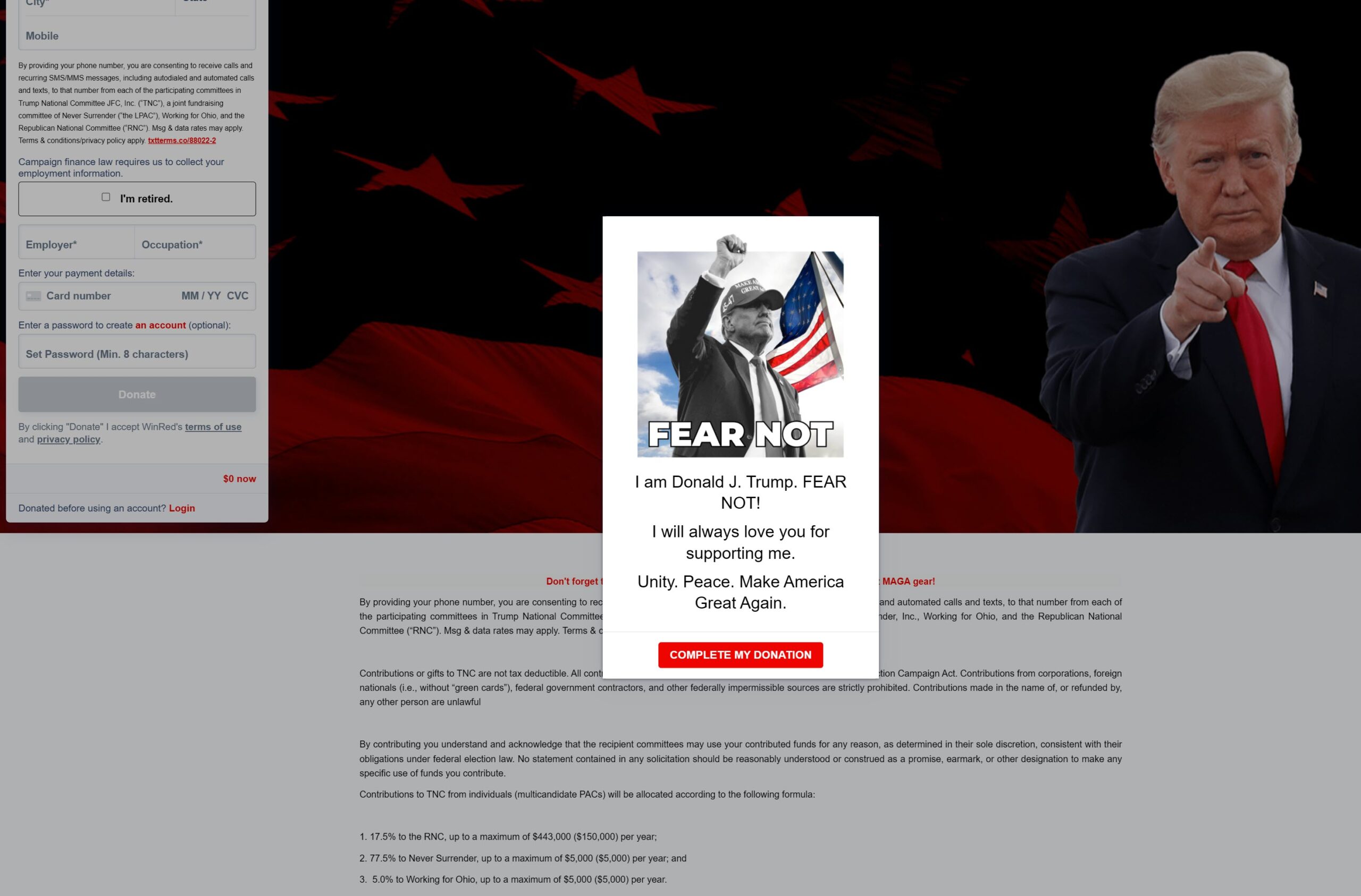 Misdirection (bait-and-switch) | “READ MEMO HERE” → Donation form | Gets the click first; conversion to money request second. |
