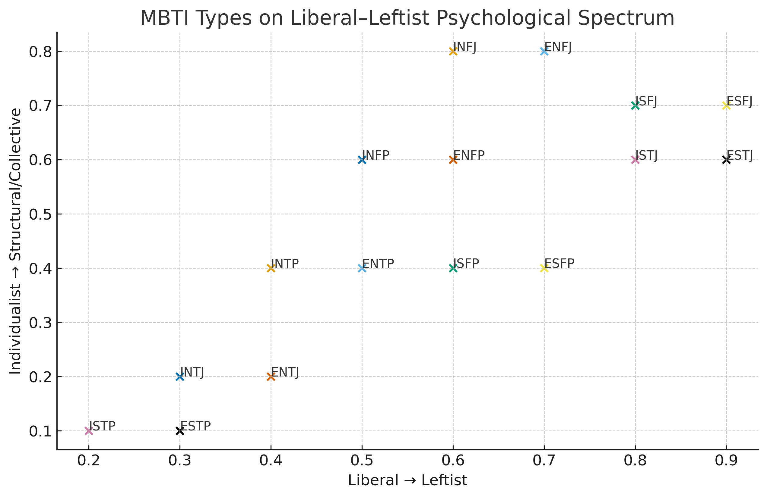 πŸ”₯ THE 16 MBTI TYPES ON A LIBERAL β†’ LEFTIST PSYCHOLOGICAL SPECTRUM