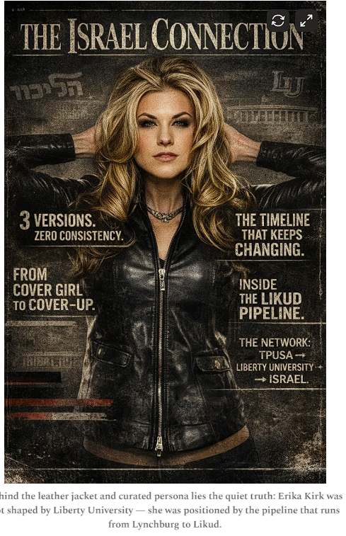 Erika Kirk’s denial that Netanyahu offered Charlie Kirk $150M is not an isolated act—it sits inside a decades-long system designed to manufacture American loyalty to a foreign political project. The moment you examine where she was formed, the pattern stops being psychological and becomes genealogical.