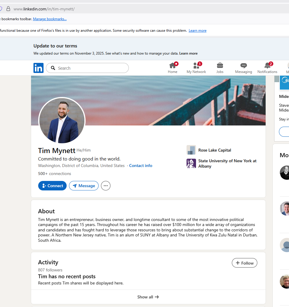 stock here: he does have a Linkedin page. I just resurrected a Linkedin account after being banned several times for speaking truth. I need the account for research like this.