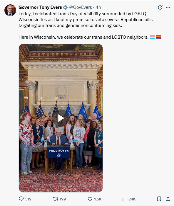 Categories Uncategorized WI Governor Evers (Ghost Soul) Promotes Trans Mental Illness Post author By admin Post date March 31, 2026 No Comments on WI Governor Evers (Ghost Soul) Promotes Trans Mental Illness stock here: And what’s up with that tiny thing….I mean the table. ← No King’s, The Useful Idiot’s Can’t See Own Role In Pushing Communism Leave a Reply Cancel replyYour email address will not be published. Required fields are marked *Comment * Name * Email * Website Save my name, email, and website in this browser for the next time I comment.